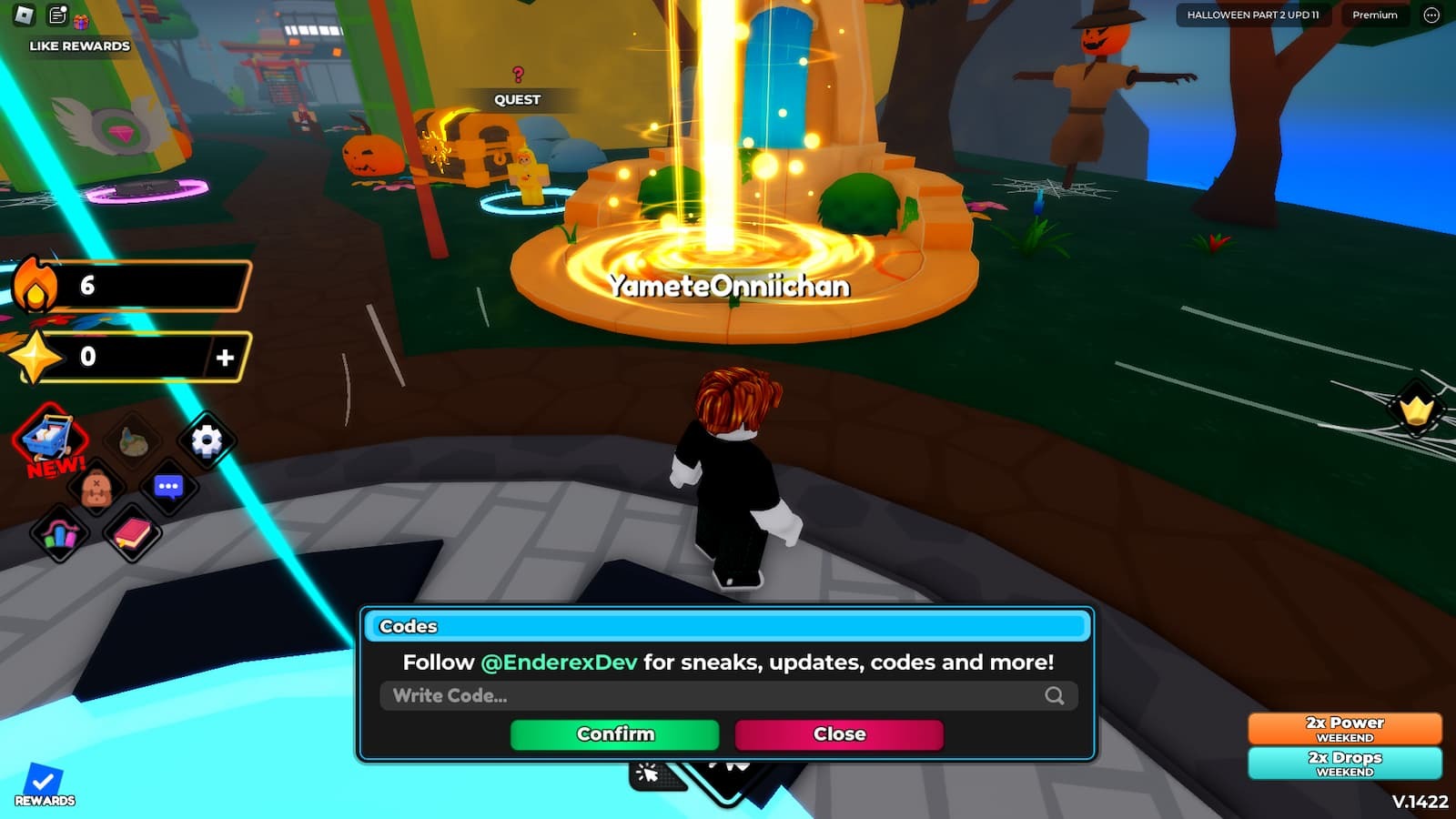 - HALLOWEENPART2 – 200 Gems and All Potions